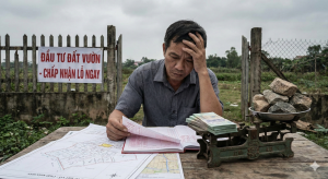 Đường vào nhỏ hơn tưởng tượng, xe không quay đầu. Đất thấp, mùa mưa là ngập. Gần nghĩa trang, gần chuồng trại, gần khu xả thải. Khu đất yên tĩnh trên video nhưng thực tế lại sát đường xe tải. Nhà nhìn mới nhưng móng nứt, tường thấm, sửa mãi không hết. Hồ sơ pháp lý thì vướng quy hoạch chồng lớp, không xây được như kỳ vọng ban đầu.